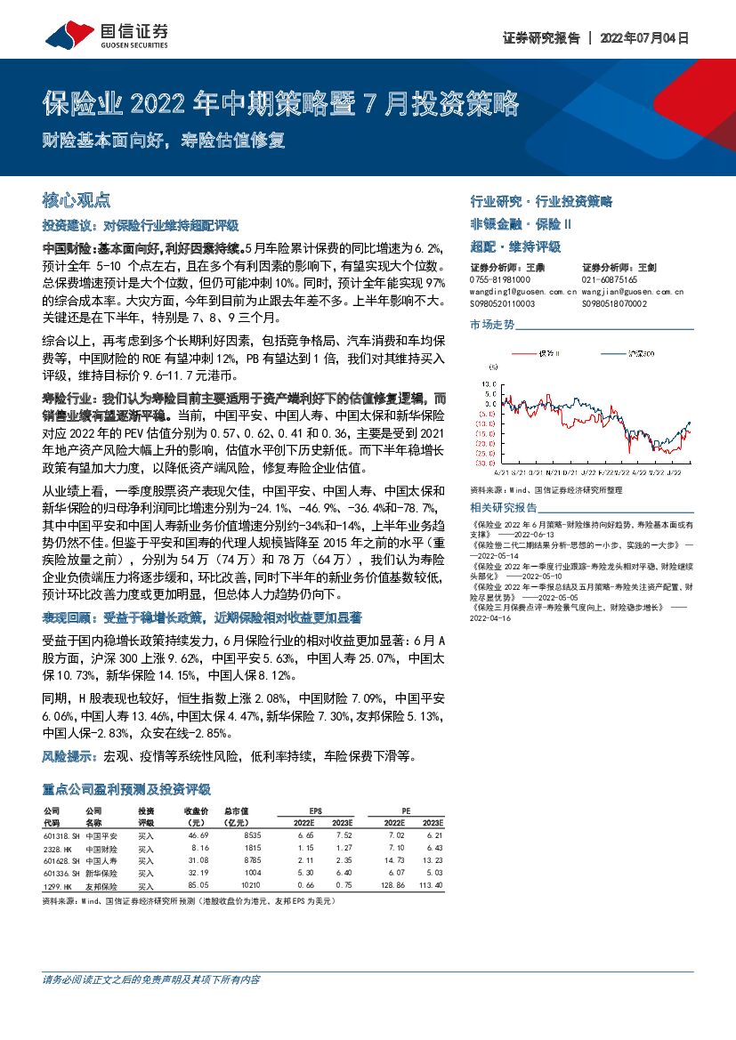 国信证券:保险业2022年中期策略暨7月投资策略:财险基本面向好,寿险估值修复.pdf