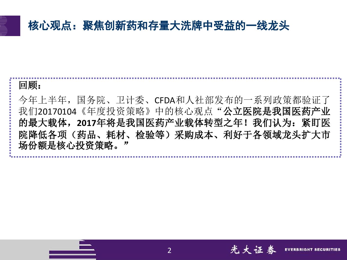光大证券:医药行业2017年中期投资策略:新医改新药政新格局,选股聚焦创新药和存量大洗牌中受益的一线龙头.pdf