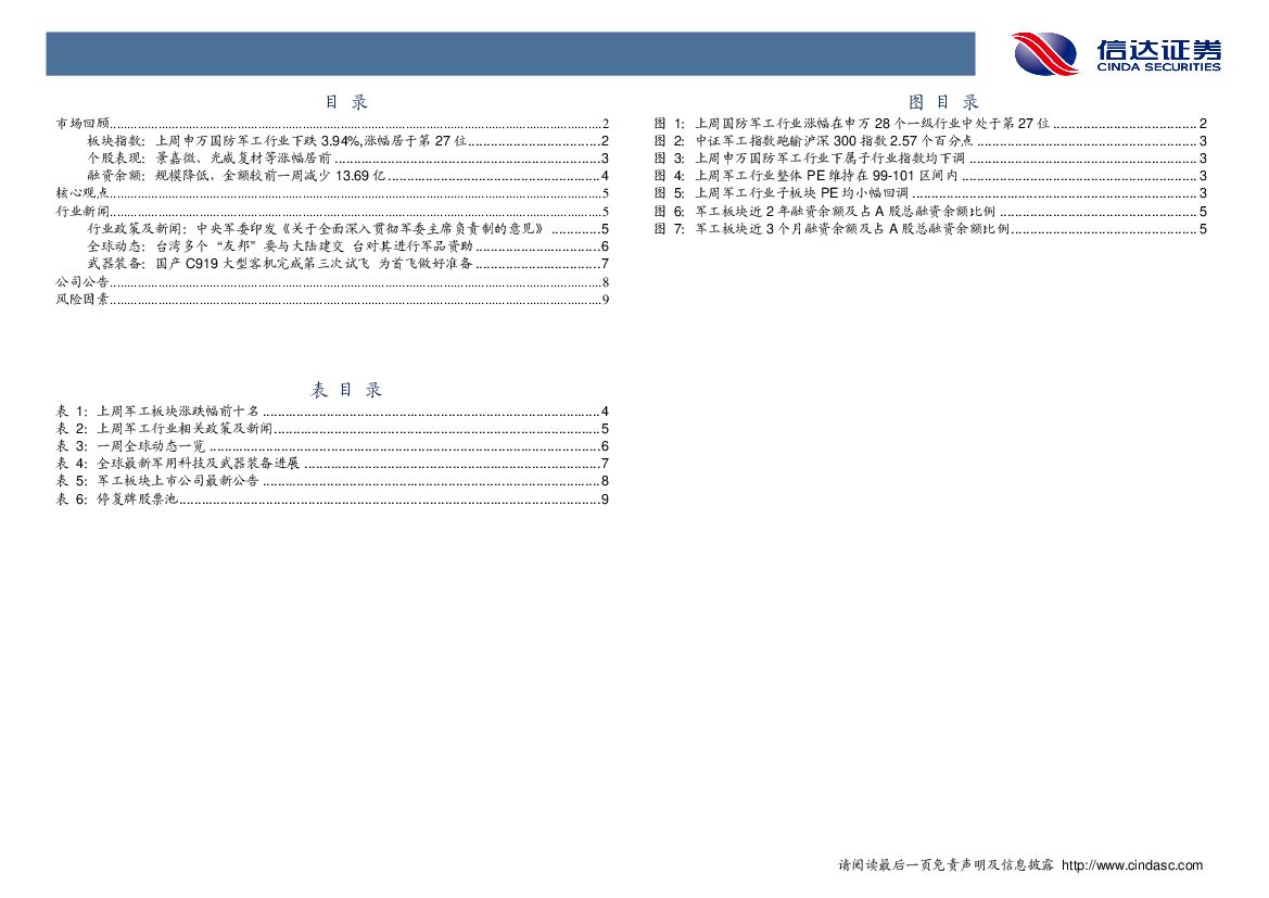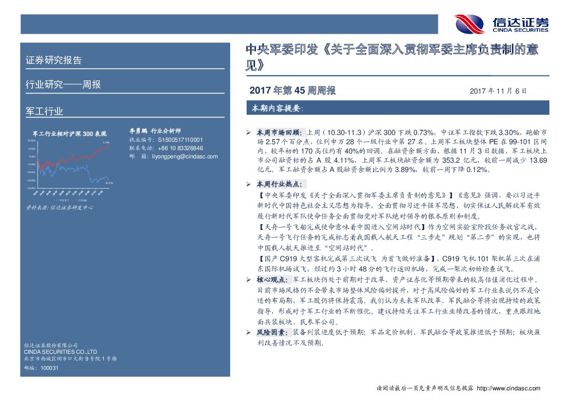 信达证券:军工行业周报:中央军委印发《关于全面深入贯彻军委主席负责制的意见》.pdf