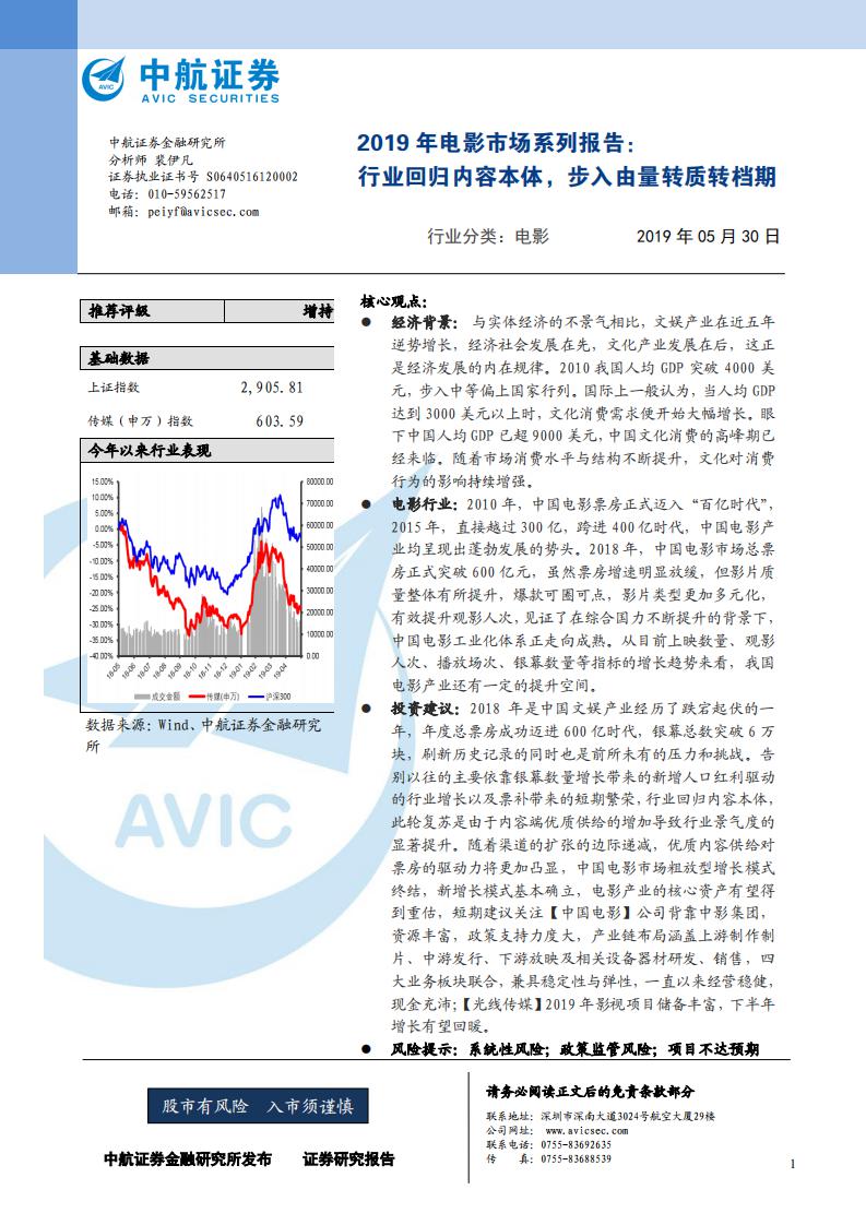 中航证券:2019年电影市场系列报告: 行业回归内容本体,步入由量转质转档期.pdf