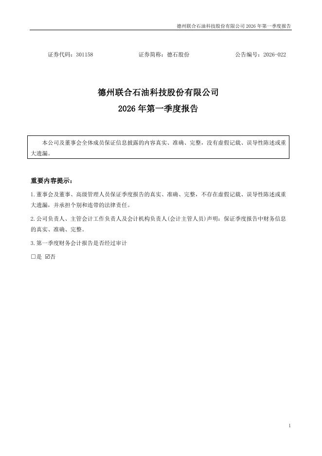301158-德石股份:2026年一季度报告.pdf