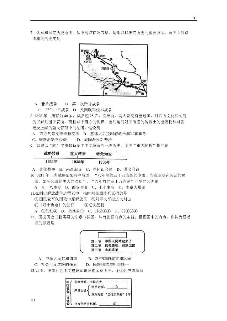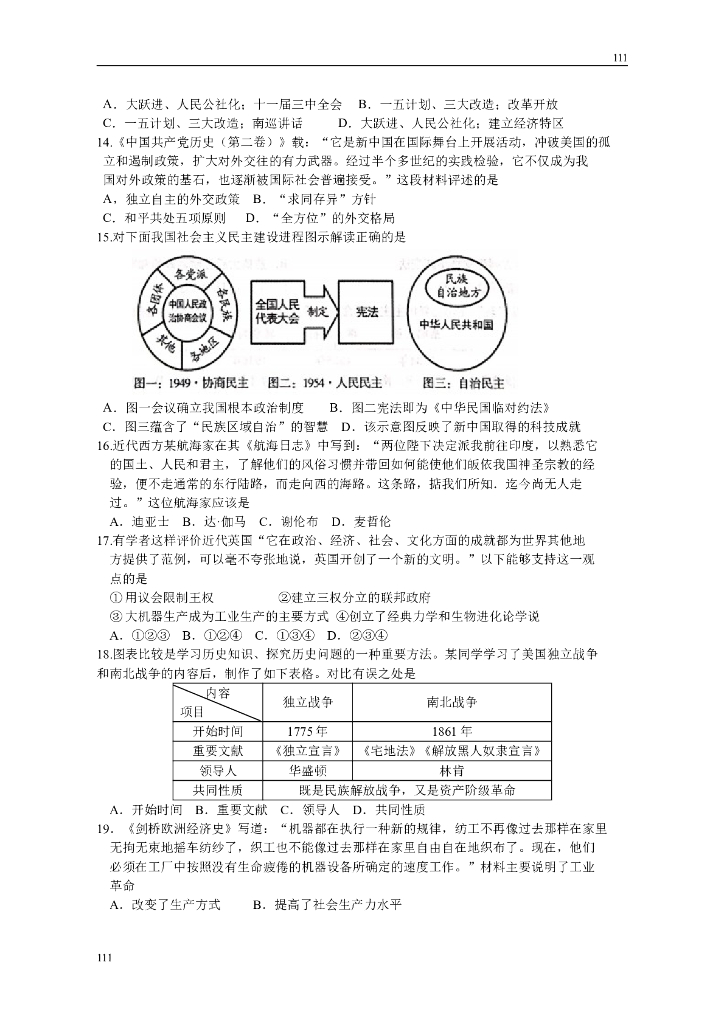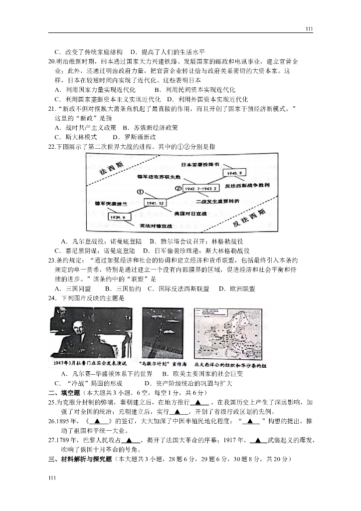 常熟市2020年初三历史调研试卷(含答案)附答案.doc