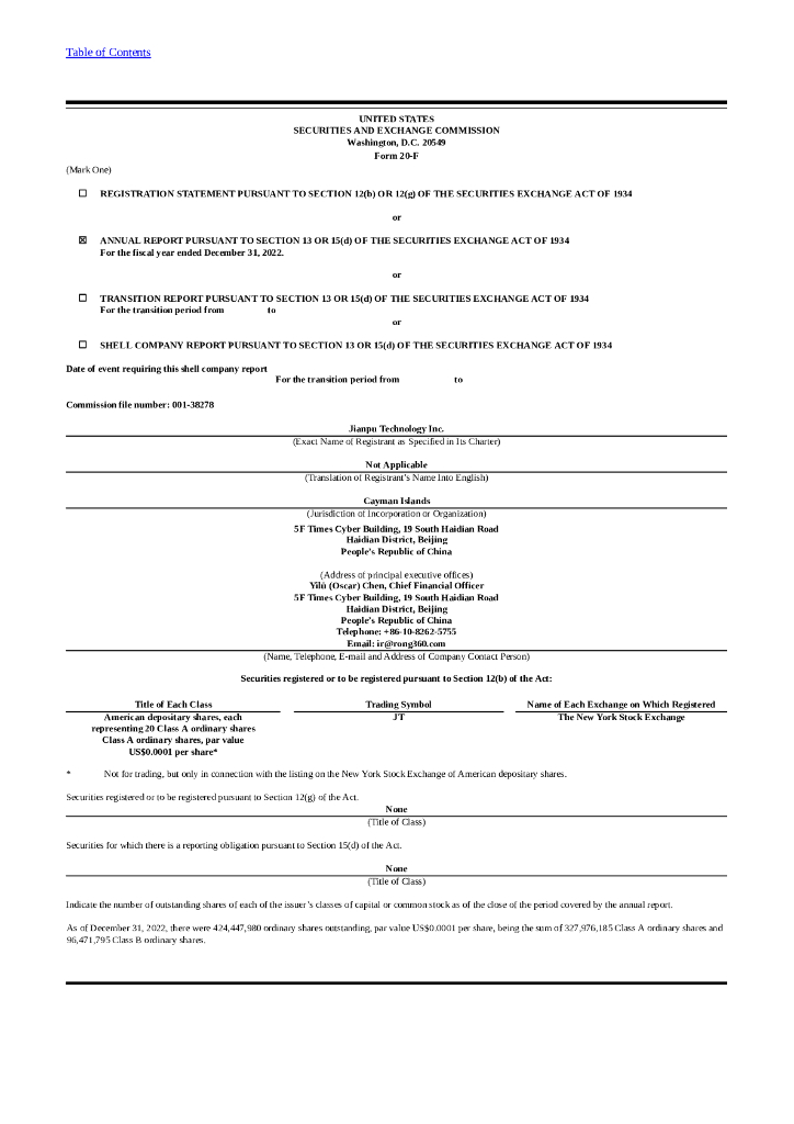 Jianpu Technology Inc.(JT)2022财年年度报告(英文版).pdf