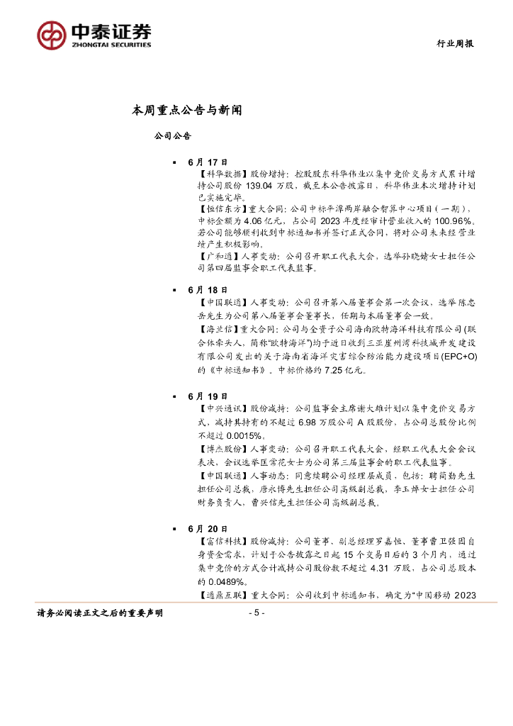 中泰证券:通信行业周报:华为开发者大会召开,5-GA新标准更好赋能低空.pdf