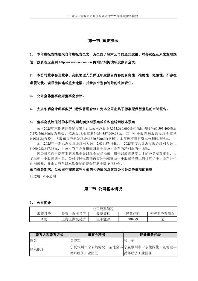 600989-宝丰能源:宁夏宝丰能源集团股份有限公司2025年年度报告摘要.pdf