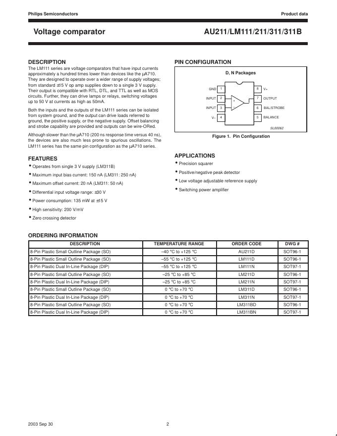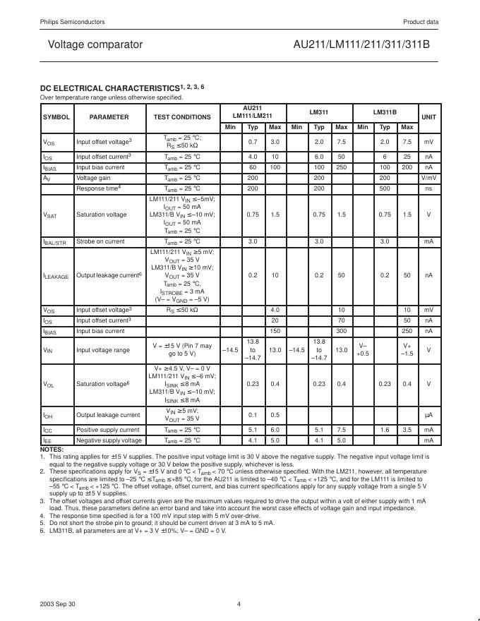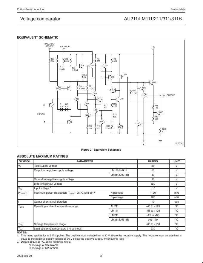 PHILIPS AU211/LM111/211/311/311B Voltage comparator 数据手册.pdf