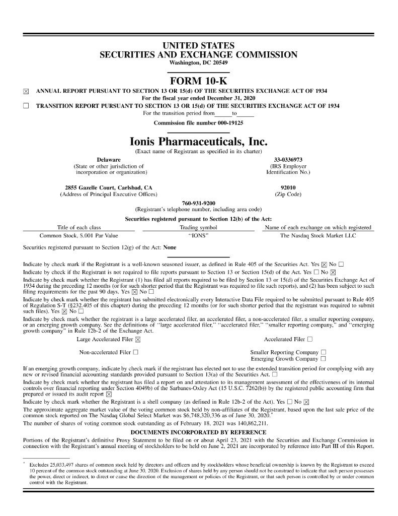 Ionis Pharmaceuticals Inc.(IONS)2020财年年度报告(英文版).pdf