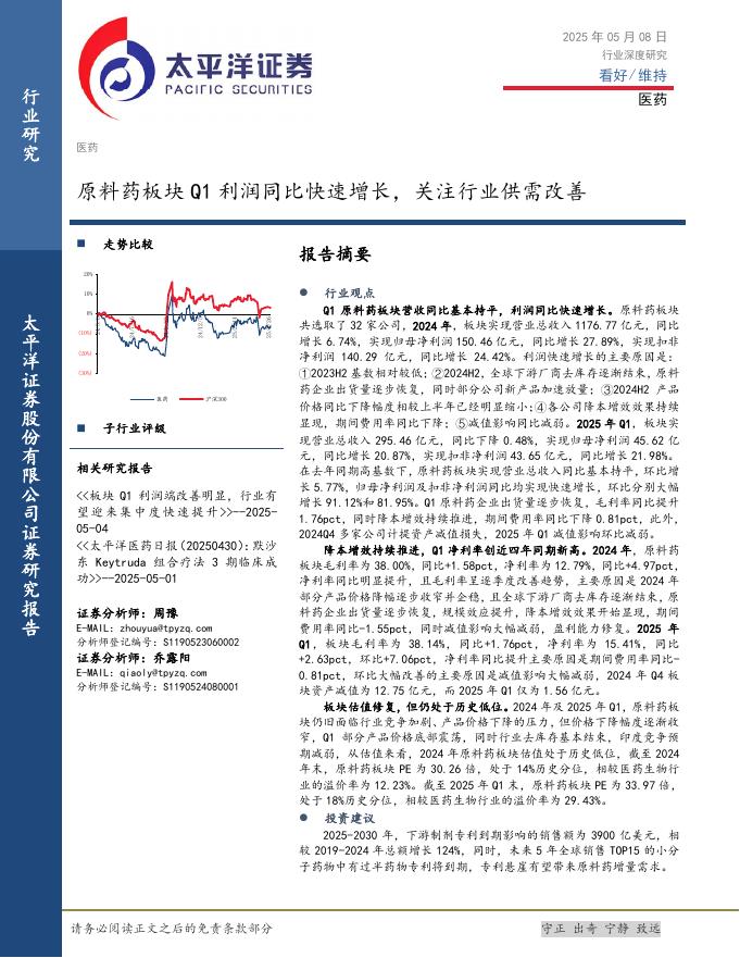 太平洋证券:医药行业深度研究:原料药板块Q1利润同比快速增长,关注行业供需改善.pdf