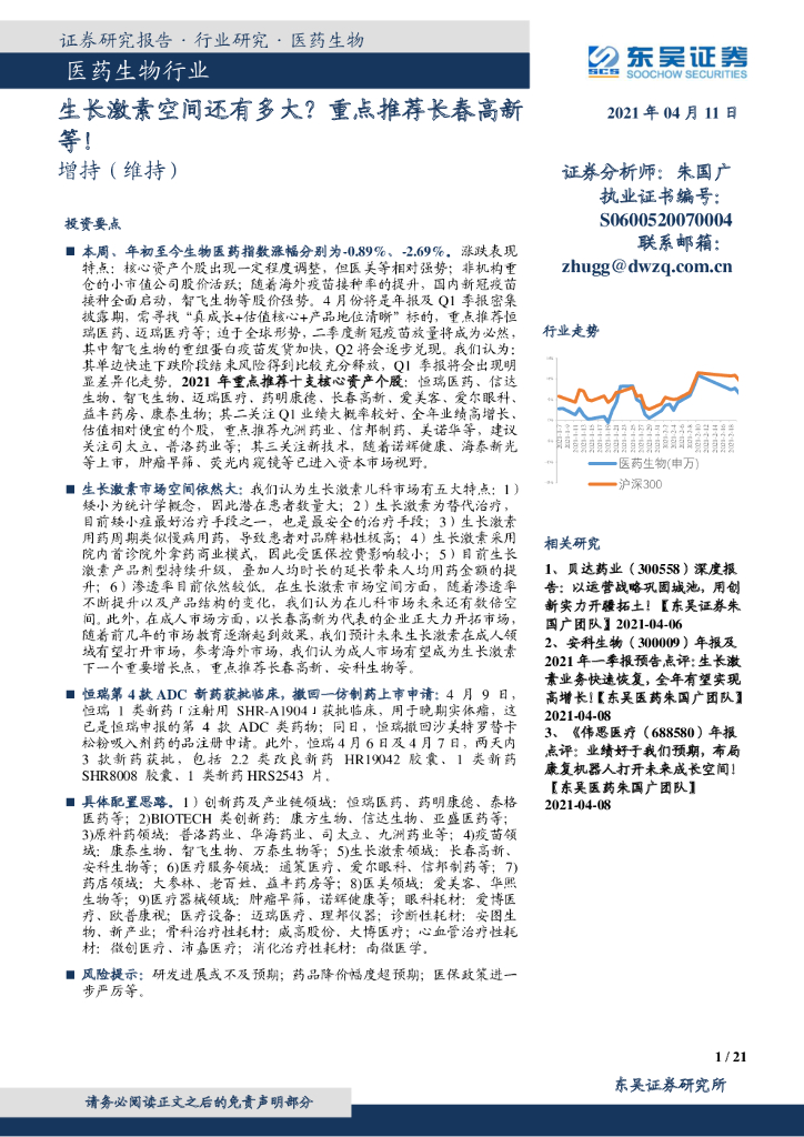 东吴证券:医药生物行业:生长激素空间还有多大?重点推荐长春高新等!.pdf