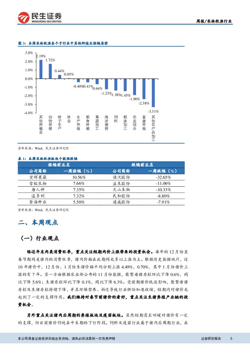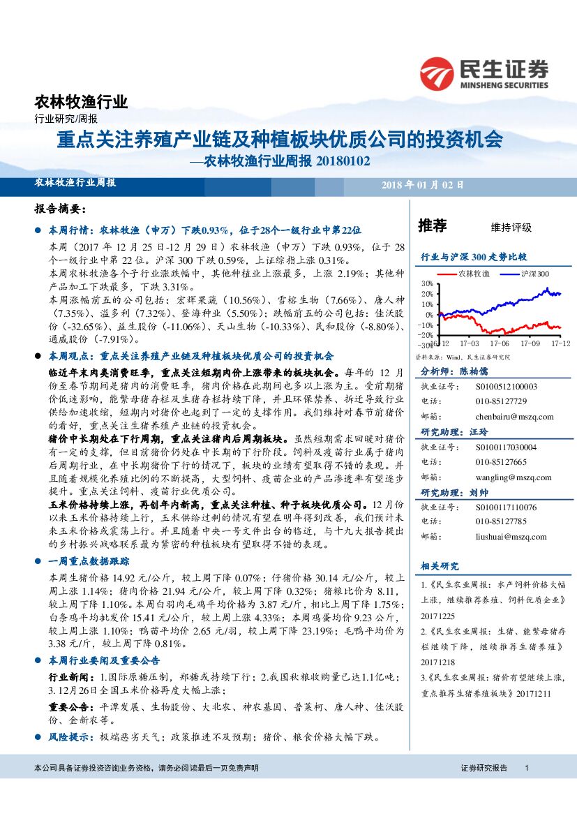 民生证券:农林牧渔行业周报 :重点关注养殖产业链及种植板块优质公司的投资机会.pdf