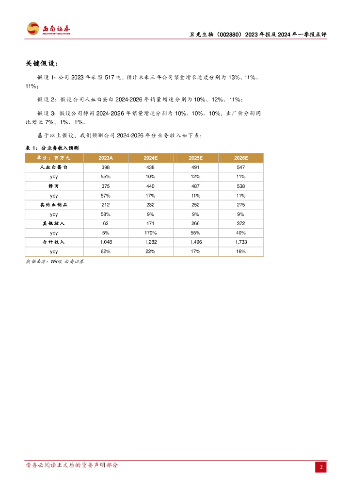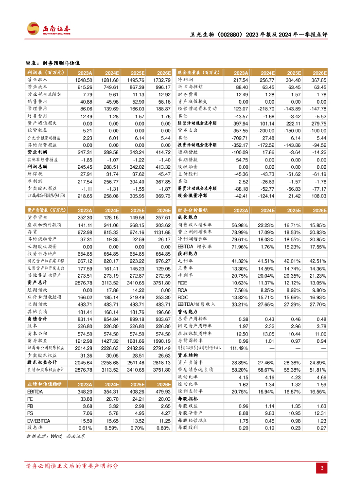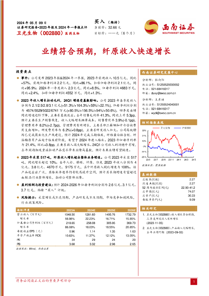 西南证券:卫光生物(002880)-业绩符合预期,纤原收入快速增长.pdf