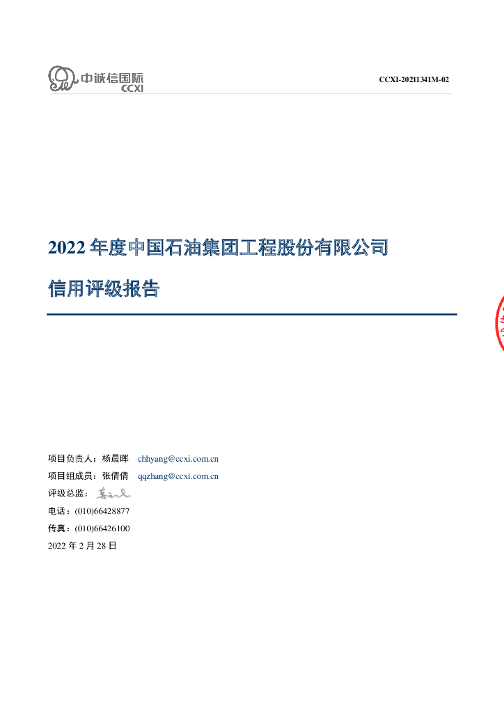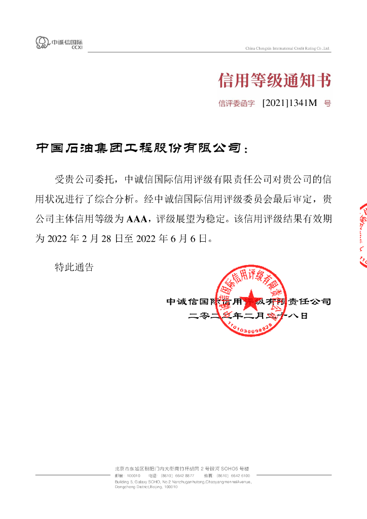 中诚信:中国石油集团工程股份有限公司主体信用评级报告及跟踪评级安排.pdf