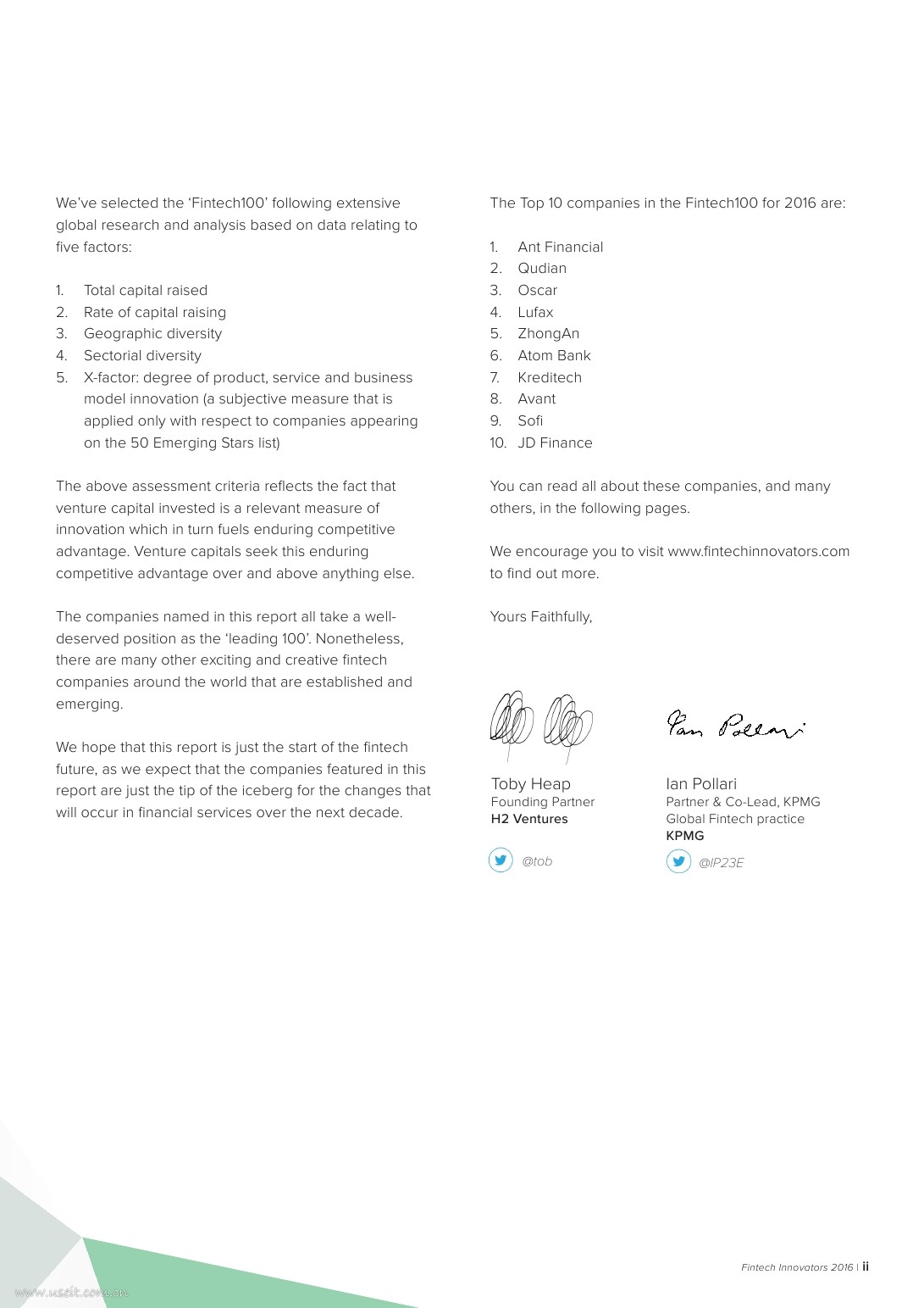 毕马威&H2 Ventures:2016全球金融科技100(英文版).pdf