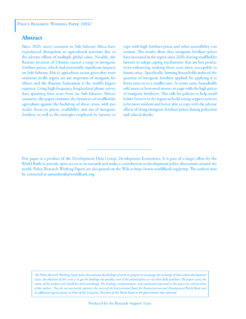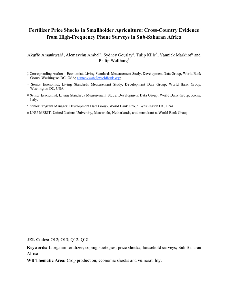 世界银行:小农农业化肥价格冲击:来自撒哈拉以南非洲高频电话调查的跨国证据(英文版).pdf