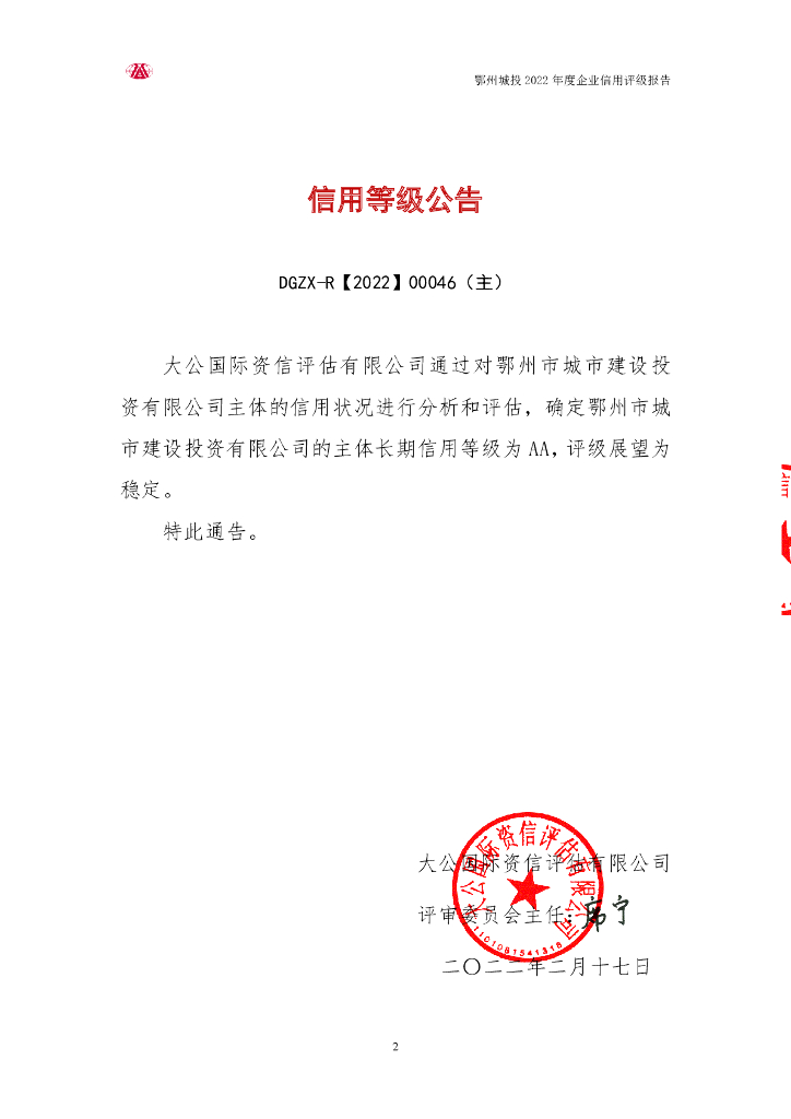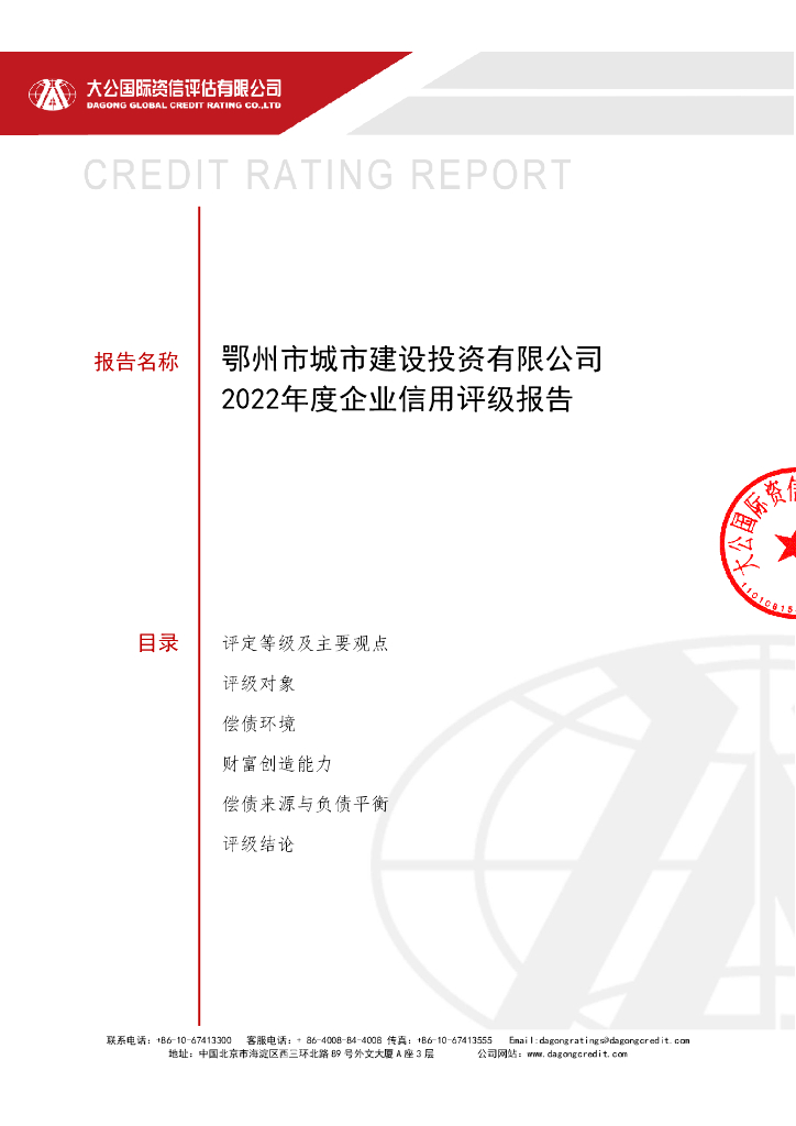 大公:鄂州市城市建设投资有限公司2022年度企业信用评级报告.pdf