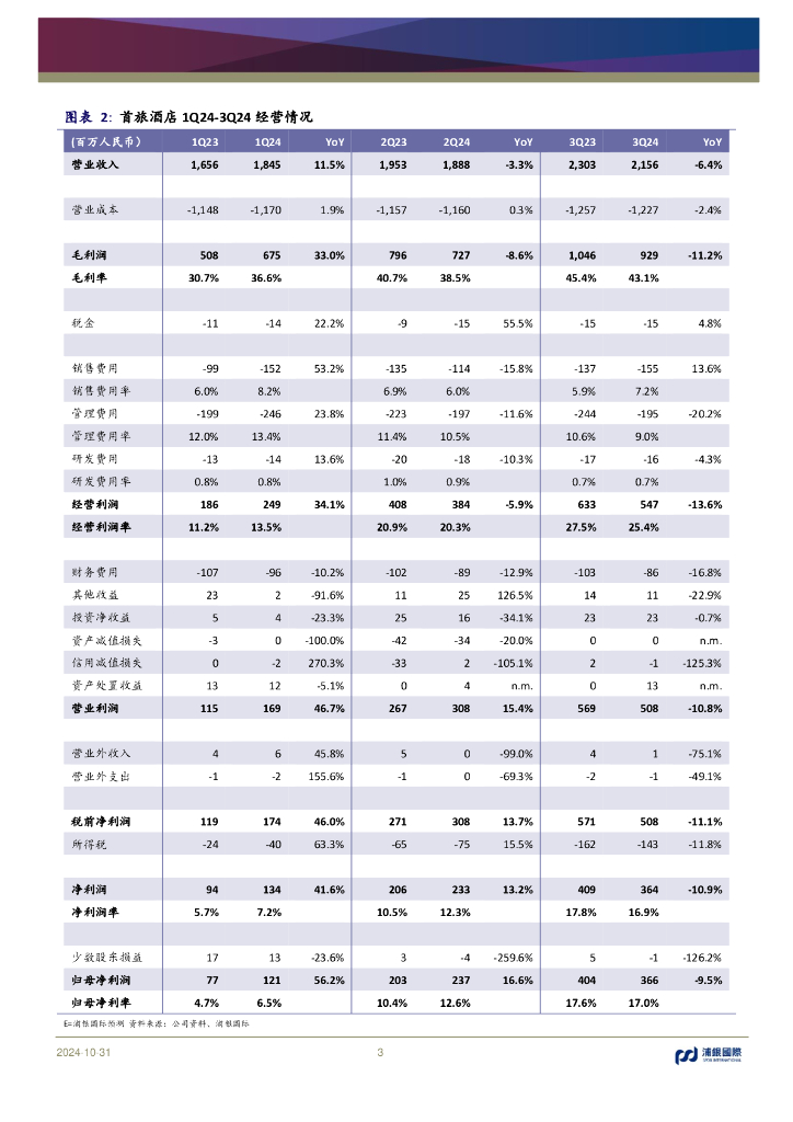 浦银国际证券:首旅酒店(600258)-高基数下3Q24RevPAR承压,门店结构优化布局长期改善.pdf