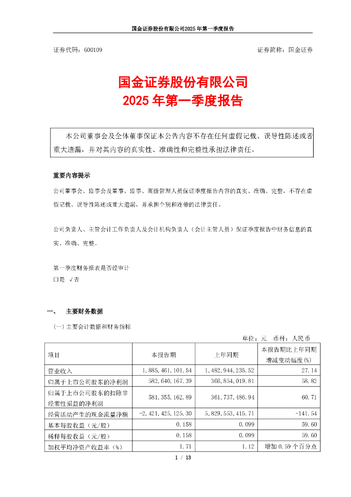 600109-国金证券:国金证券股份有限公司2025年第一季度报告.pdf