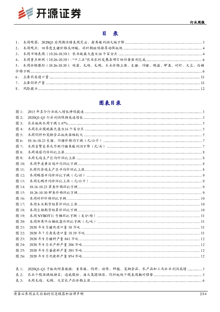 开源证券:农林牧渔行业周报:2020年三季报业绩总结:后周期业绩表现突出,禽养殖利润大幅下降.pdf
