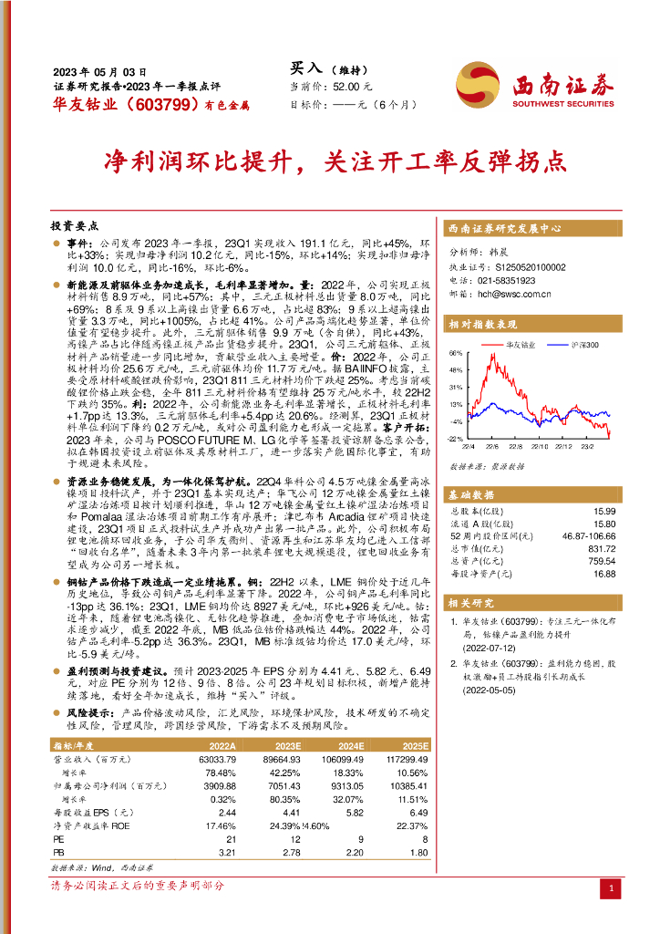 西南证券:华友钴业(603799)-净利润环比提升,关注开工率反弹拐点.pdf