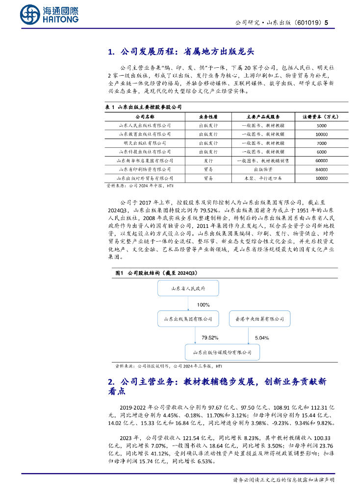 海通国际:山东出版(601019)-首次覆盖:立足山东打造教材教辅品牌,高分红回馈投资者.pdf