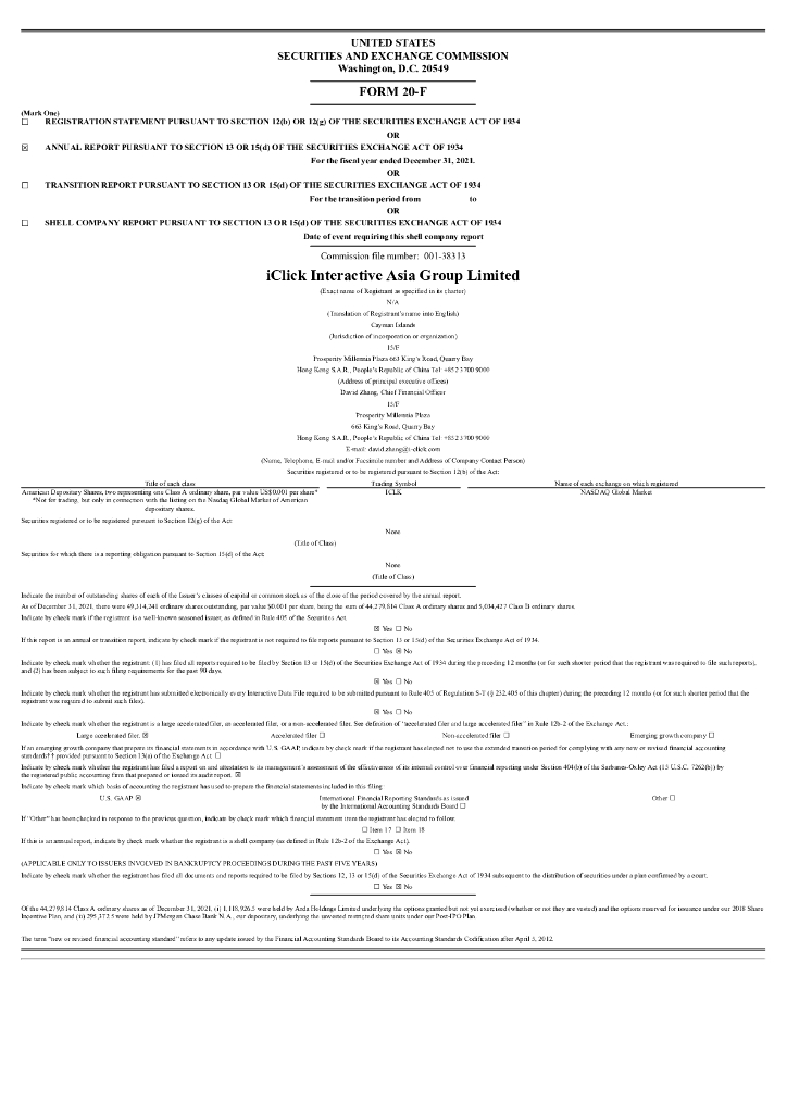 iClick Interactive Asia Group Limited(ICLK)2021财年年度报告(英文版).pdf