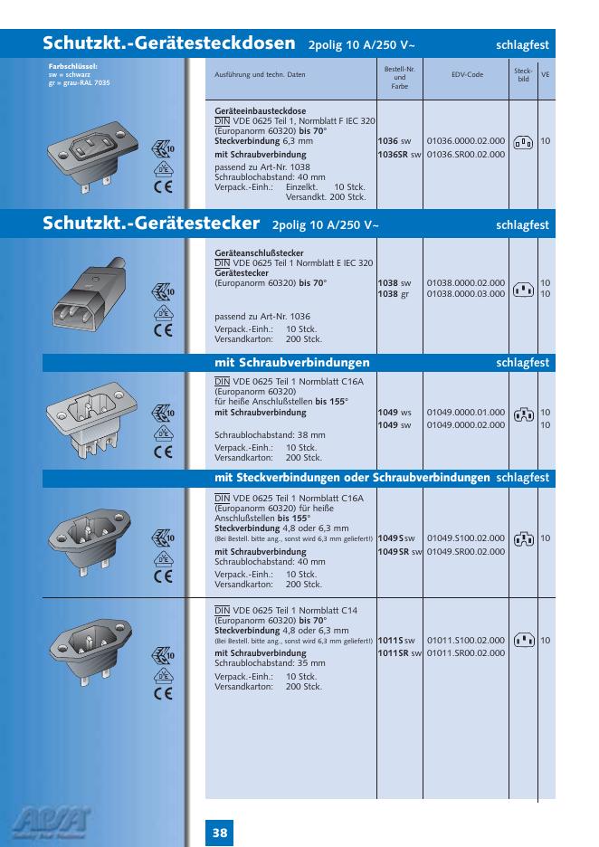 APSA Schutzkt.-Gerätesteckdosen 2polig 10 A/250 V~ 数据手册.pdf