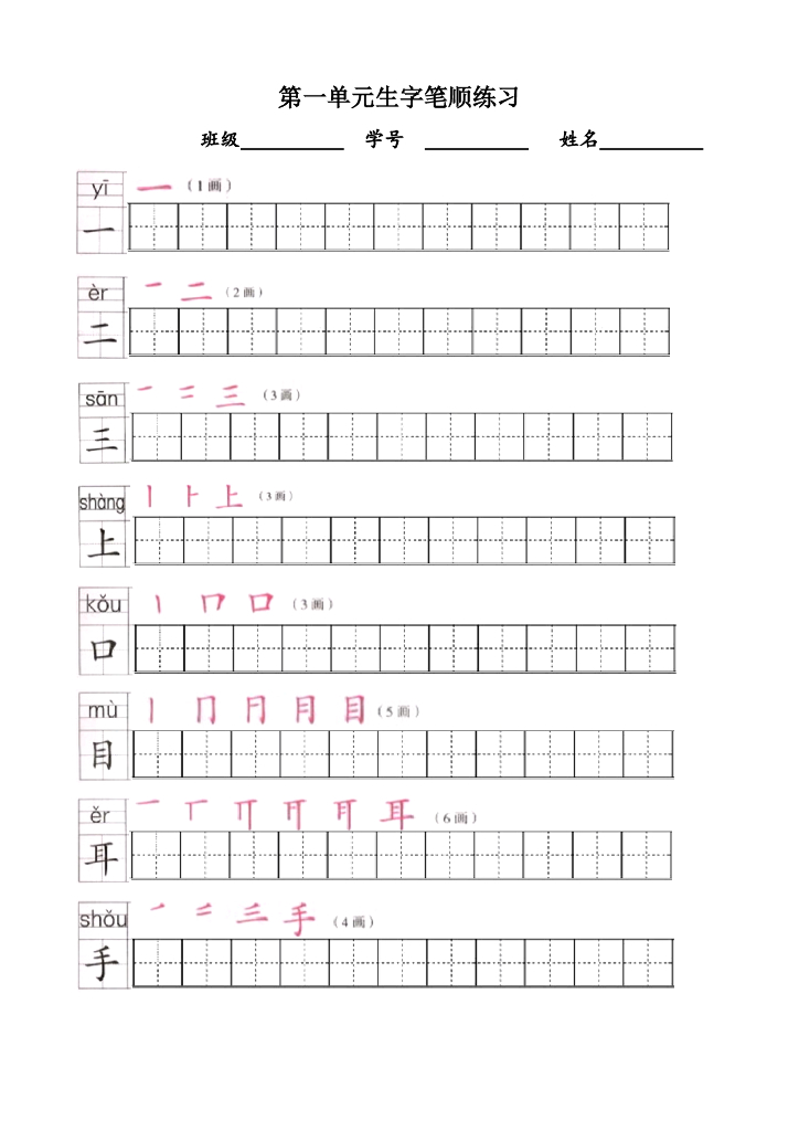 【新部编版】一年级语文上全册生字笔顺描红字帖(pdf般,13页).pdf