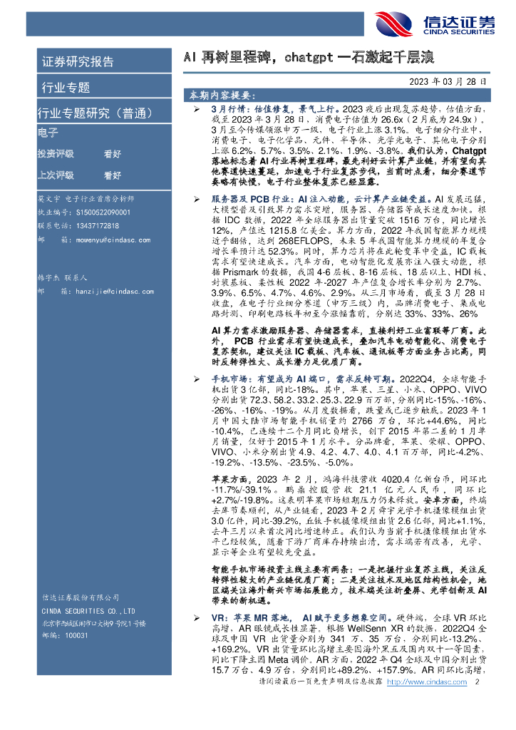 信达证券:电子行业专题研究(普通):AI再树里程碑,chatgpt一石激起千层浪.pdf
