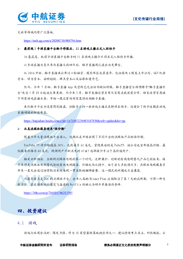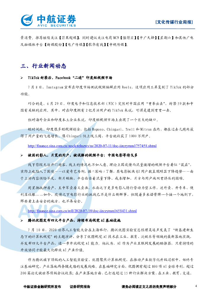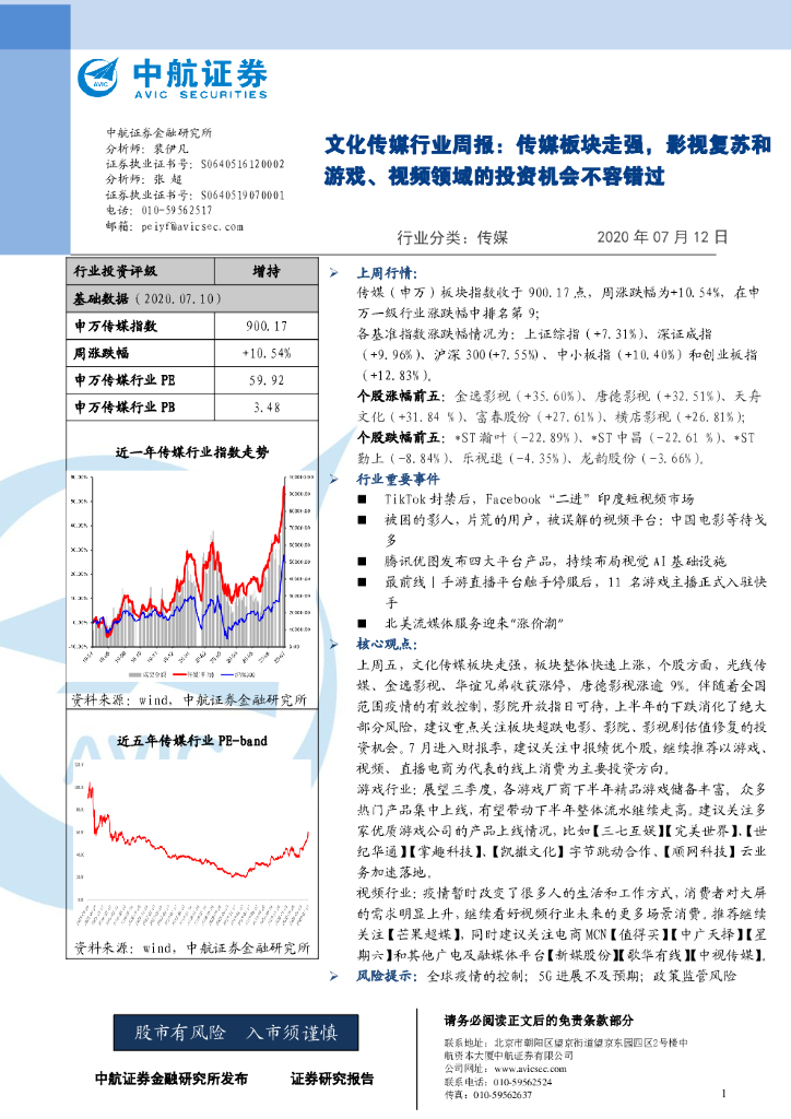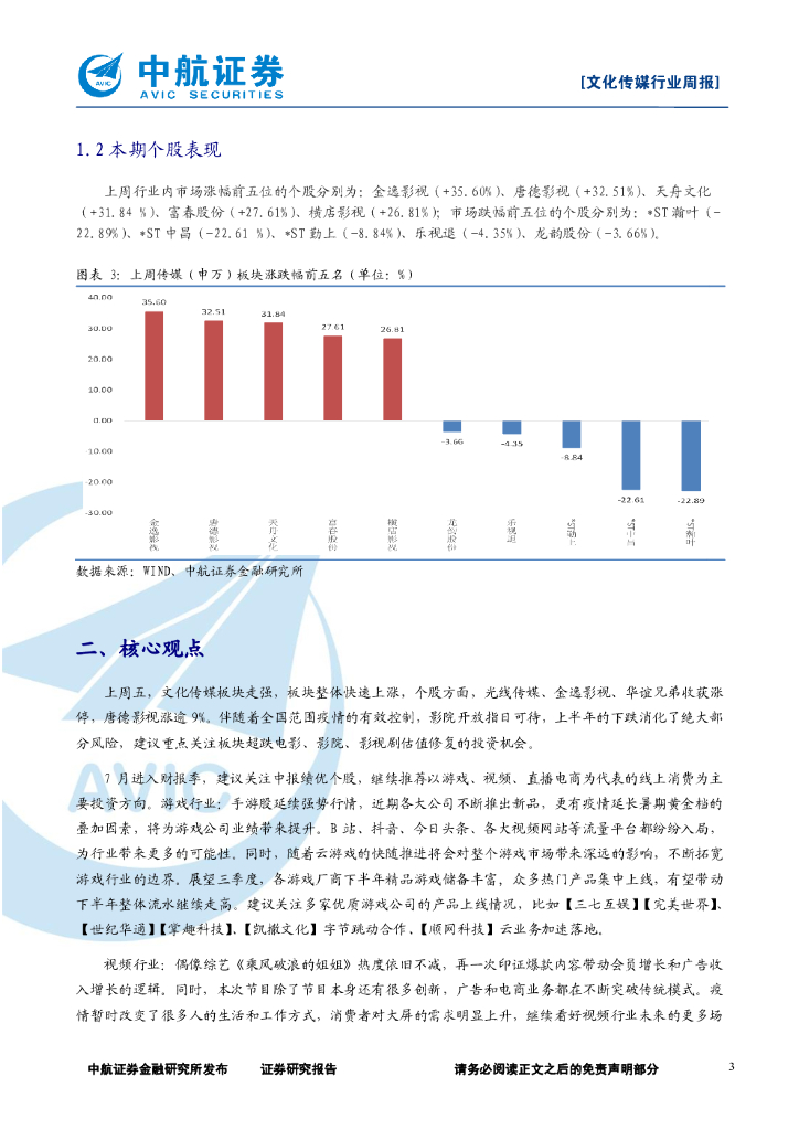 中航证券:文化传媒行业周报:传媒板块走强,影视复苏和游戏、视频领域的投资机会不容错过.pdf