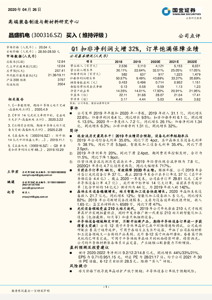 国金证券:晶盛机电(300316)-Q1扣非净利润大增32%,订单饱满保障业绩.pdf