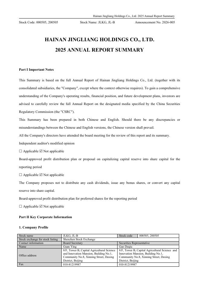 000505-京粮B:2025年年度报告摘要(英文版).pdf