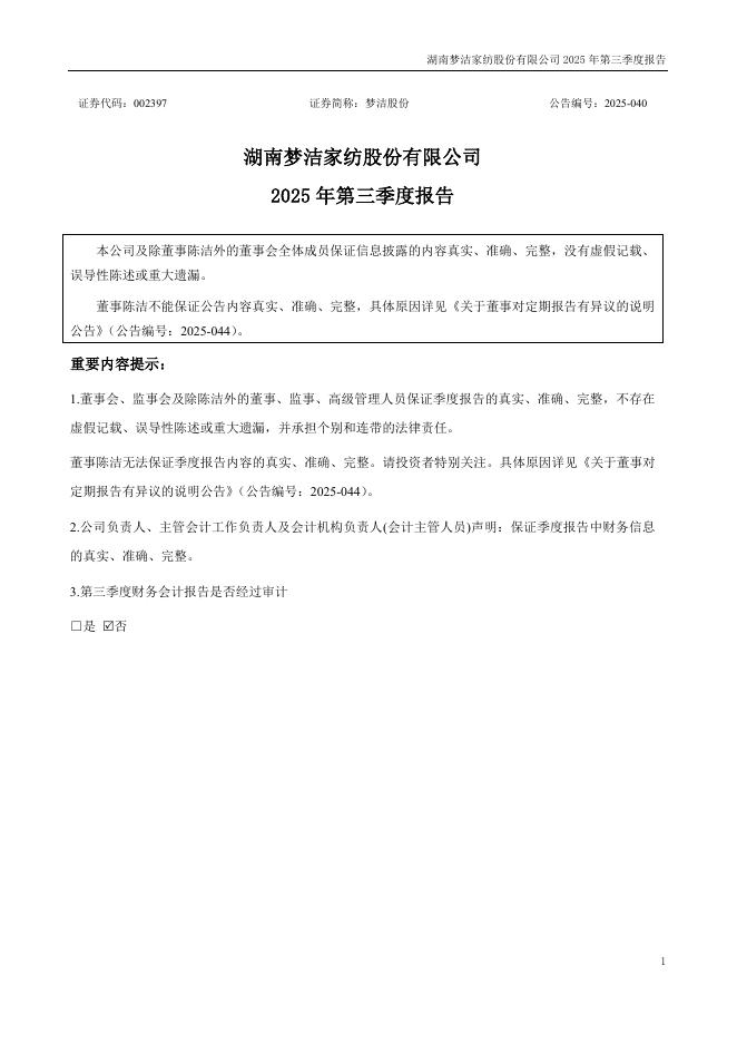 002397-梦洁股份:2025年三季度报告.pdf