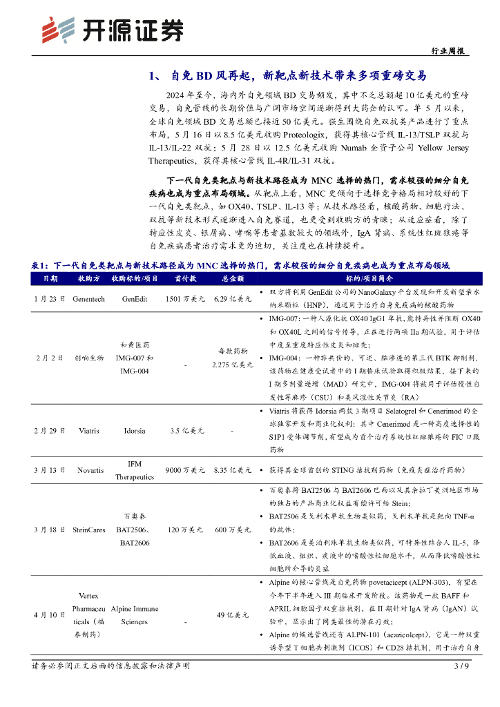 开源证券:医药生物行业周报:自免BD风再起,新靶点新技术带来多项重磅交易.pdf