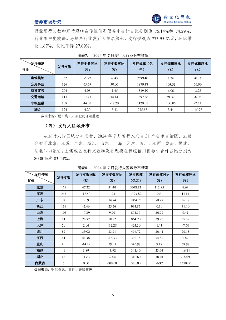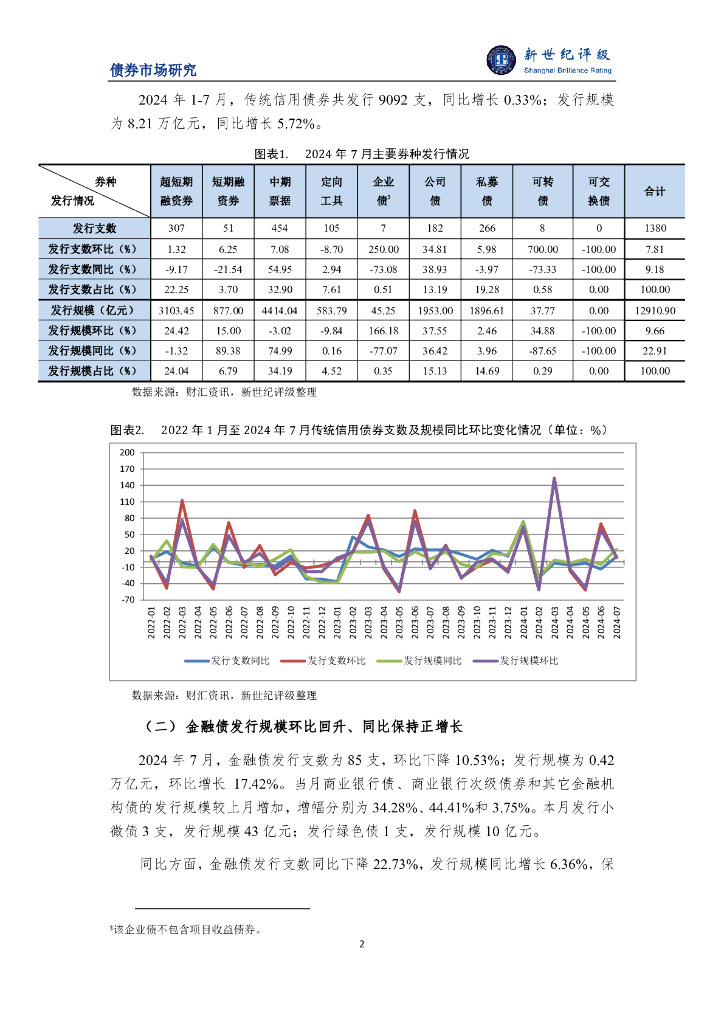 新世纪评级:信用债发行环比同比均增长明显——2024年7月信用债发行与评级概况.pdf