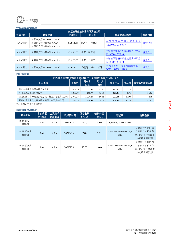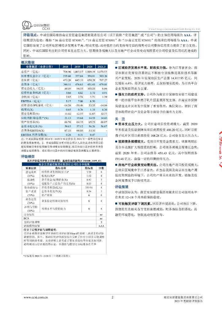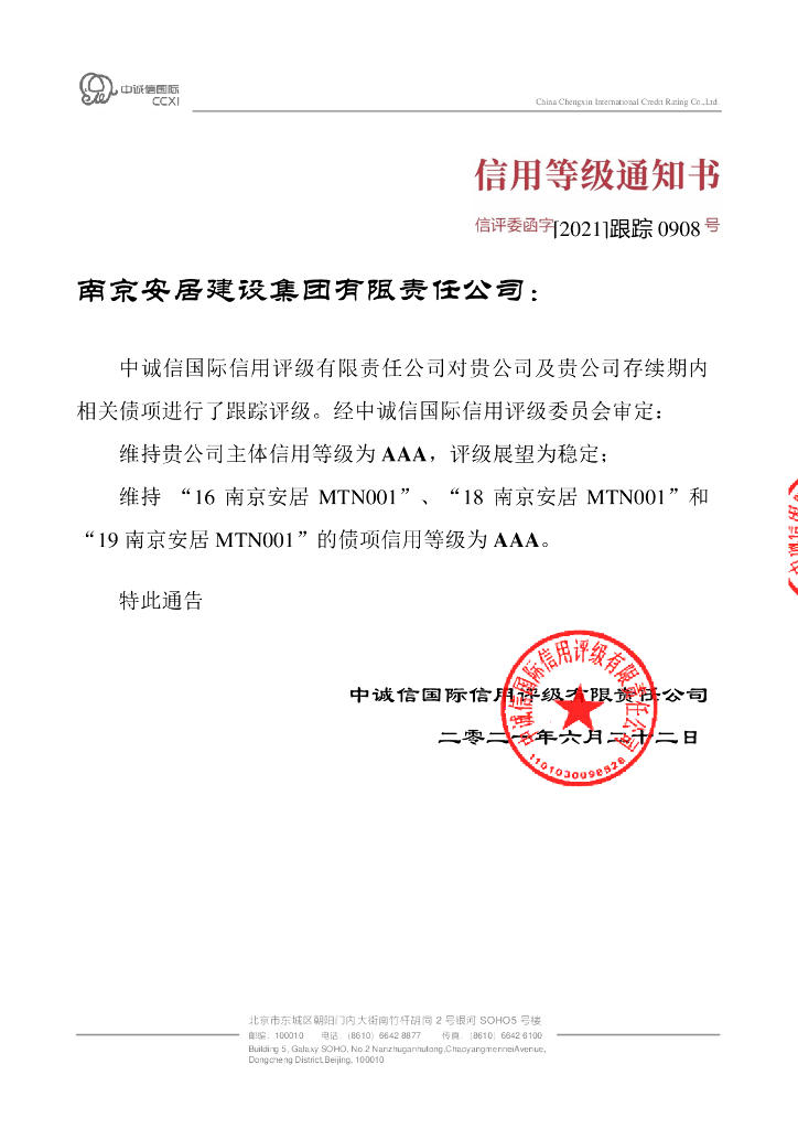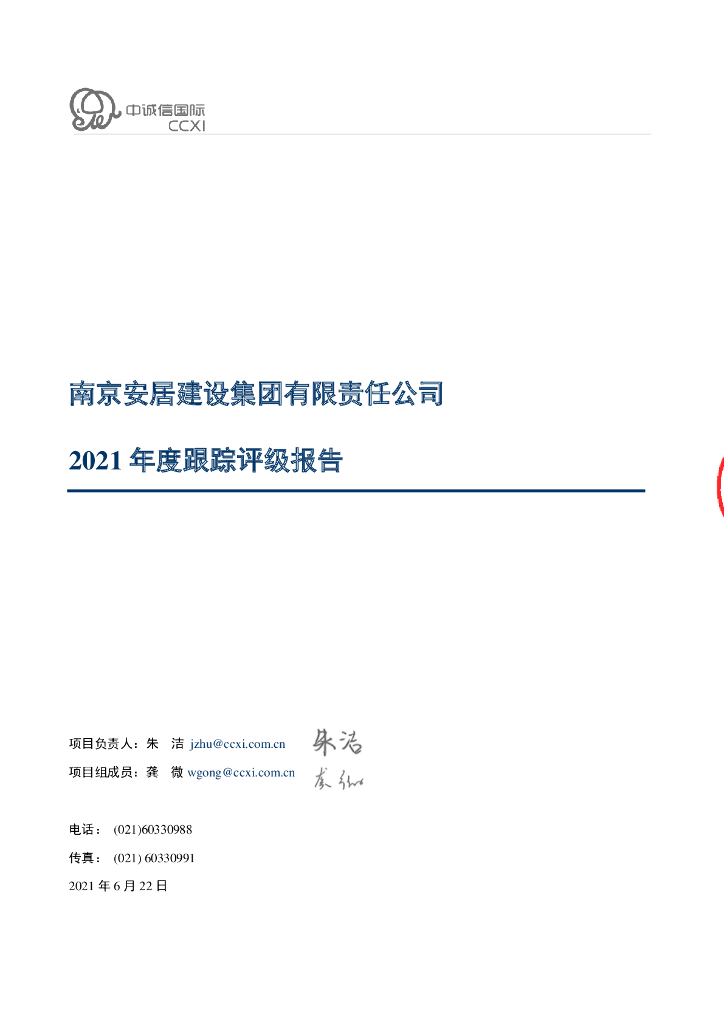 中诚信:南京安居建设集团有限责任公司主体信用评级报告及跟踪评级安排.pdf