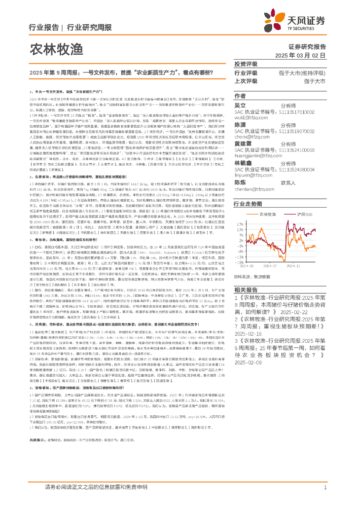 天风证券:农林牧渔2025年第9周周报:一号文件发布,首提“农业新质生产力”,看点有哪些?.pdf