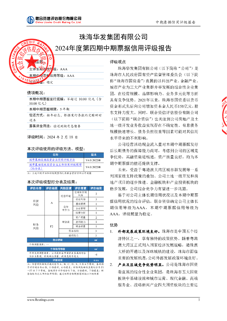 联合资信:珠海华发集团有限公司2024年度第四期中期票据信用评级报告.pdf
