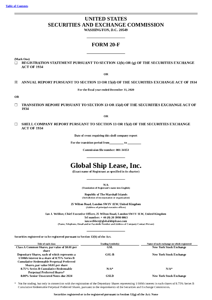 Global Ship Lease, Inc.(GSL)2020财年年度报告(英文版).pdf