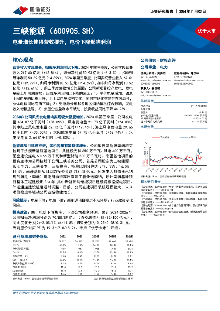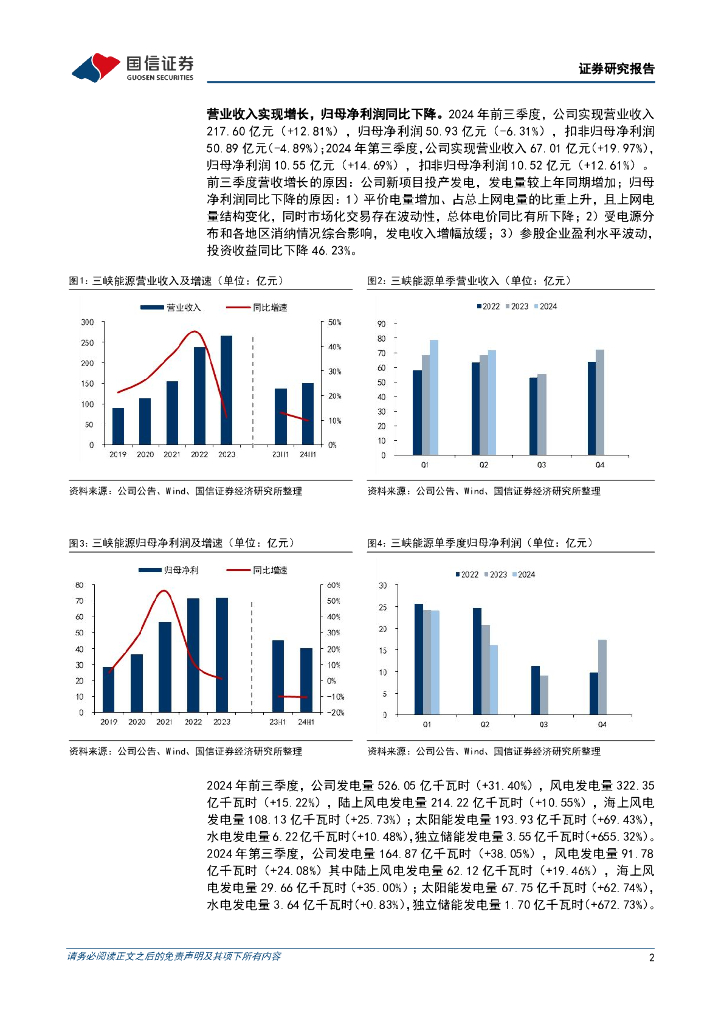 国信证券:三峡能源(600905)-电量增长使得营收提升,电价下降影响利润.pdf
