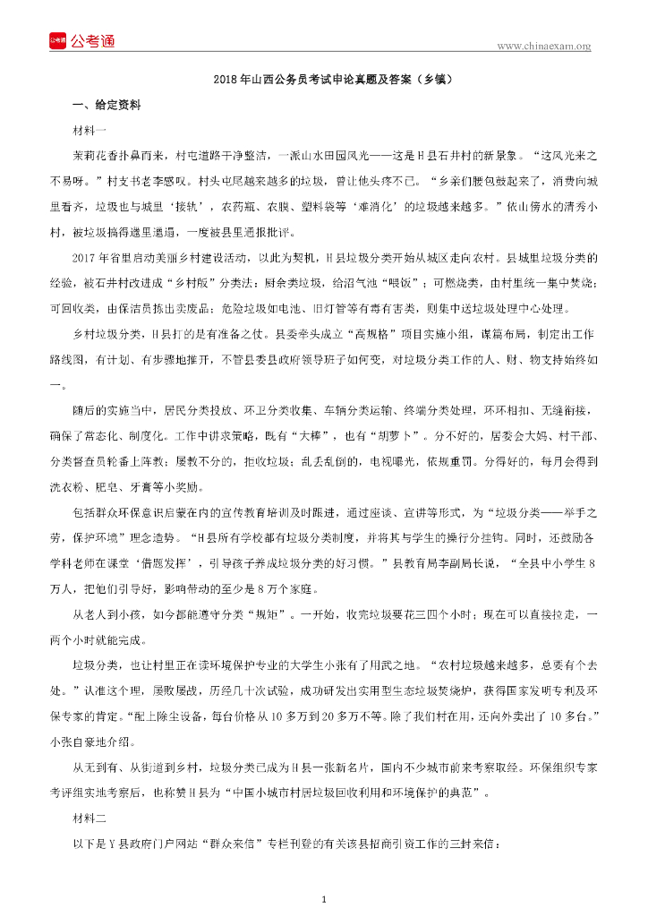 2018年山西公务员考试申论真题及答案(乡镇).pdf