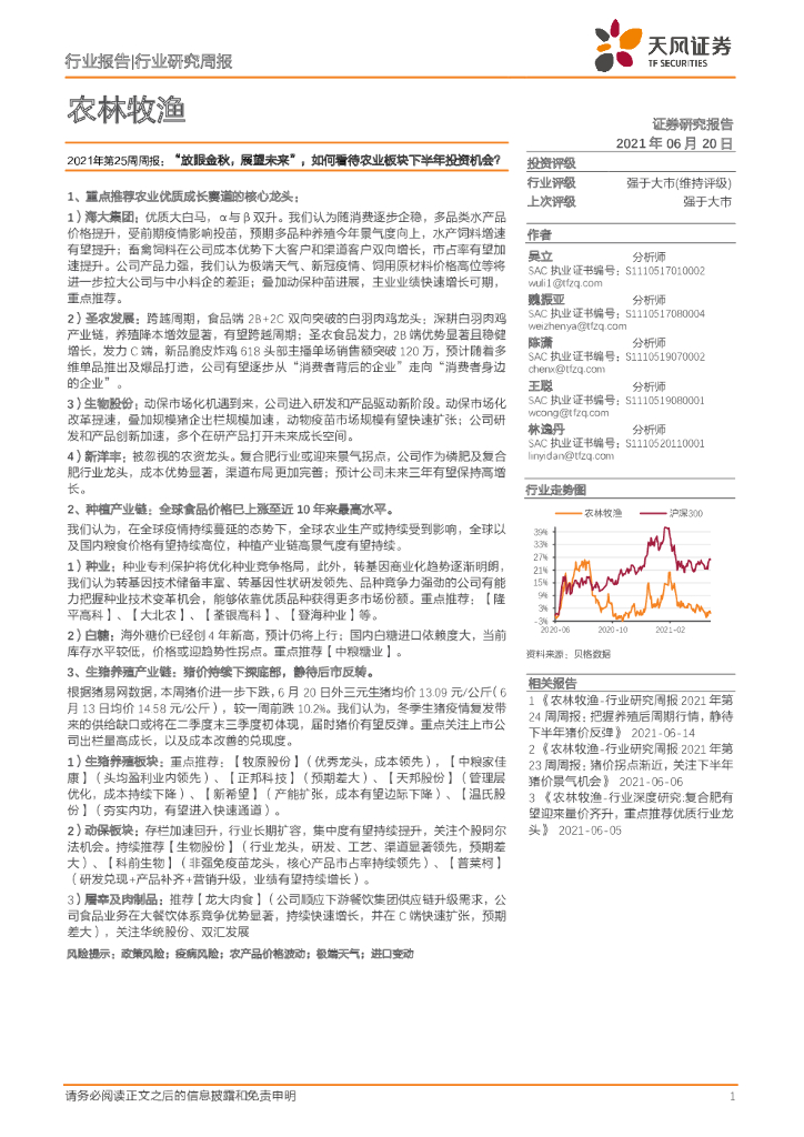 天风证券:农林牧渔2021年第25周周报:“放眼金秋,展望未来”,如何看待农业板块下半年投资机会?.pdf