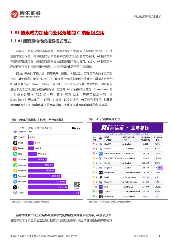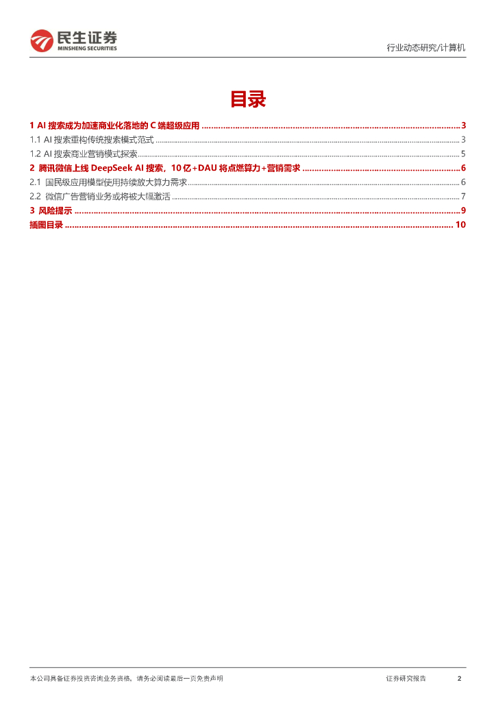 民生证券:计算机行业动态研究:AI搜索深度:微信接入DeepSeeK.pdf