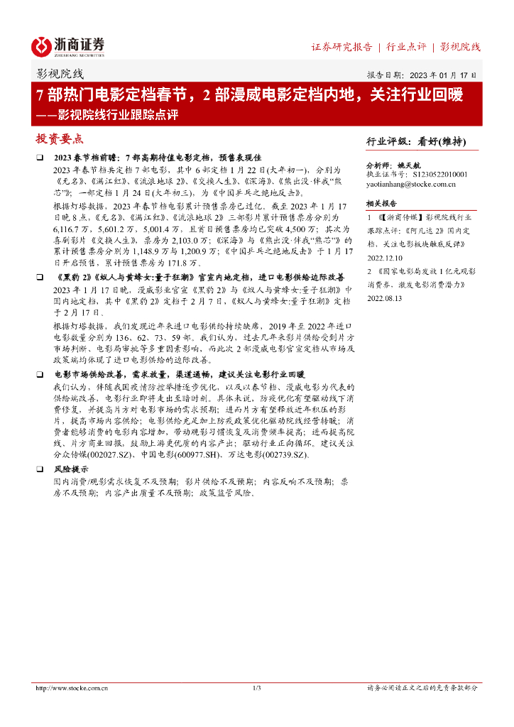 浙商证券:影视院线行业跟踪点评:7部热门电影定档春节,2部漫威电影定档内地,关注行业回暖.pdf
