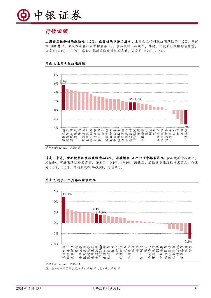 中银证券:食品饮料行业周报:1Q24白酒营收增速领跑,啤酒升级趋势明确,食品盈利能力出现改善.pdf