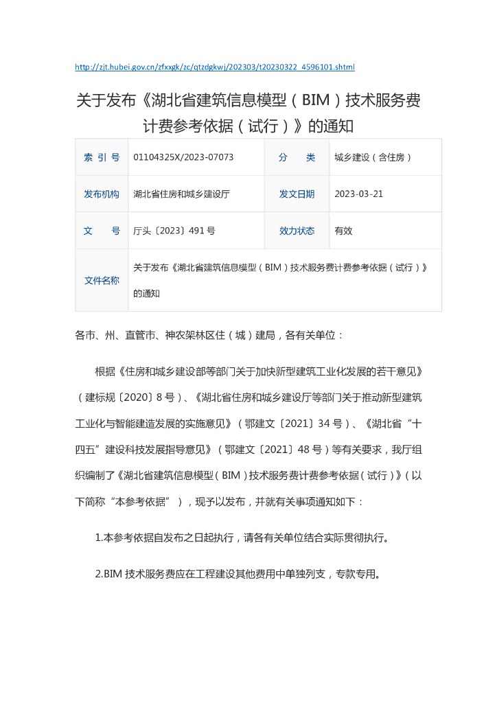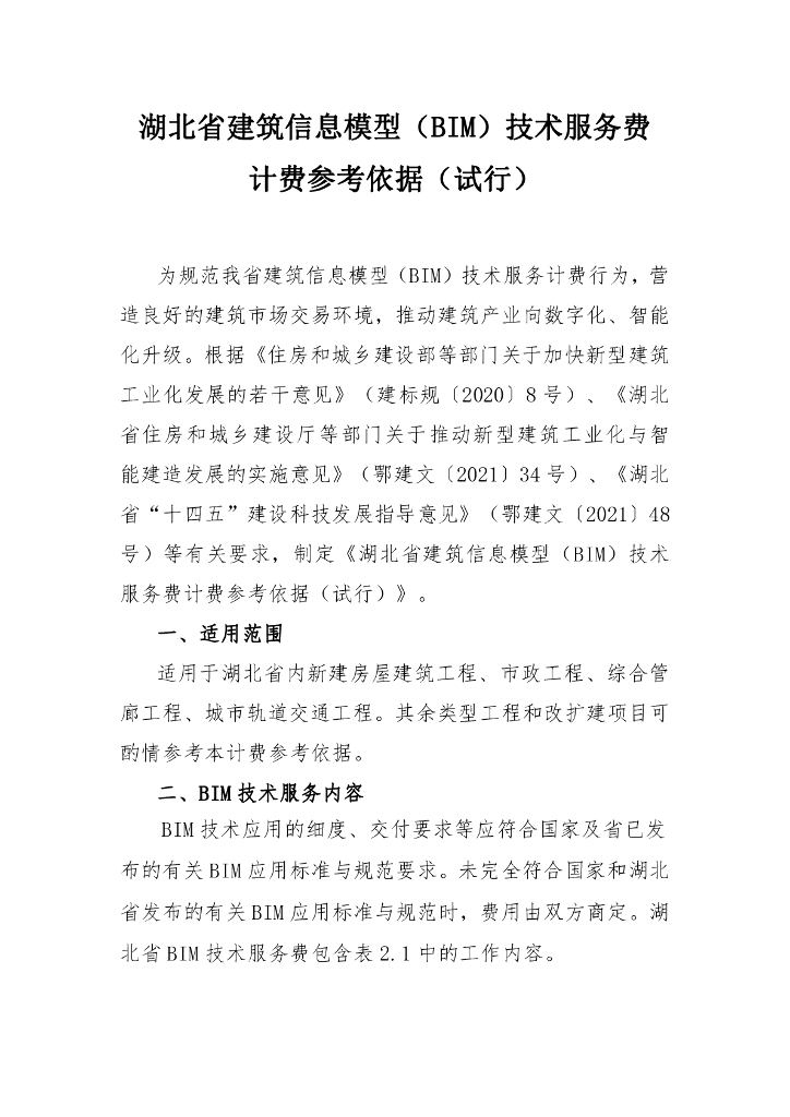 湖北省建筑信息模型BIM技术服务费计费参考.pdf