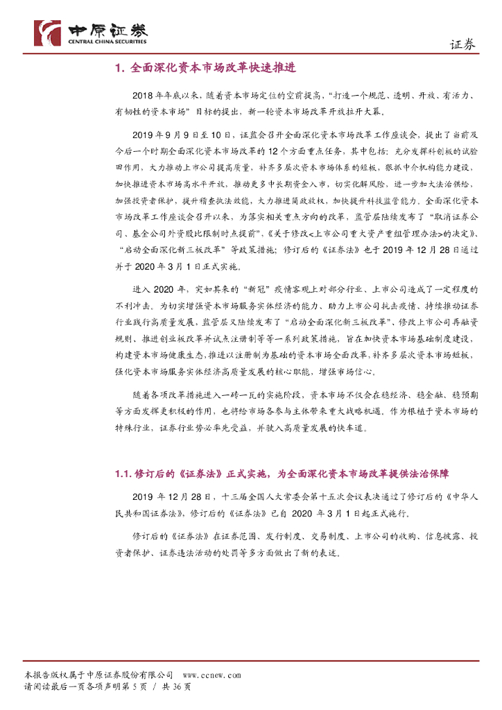 中原证券:证券行业2020年中期投资策略:全面深化资本市场改革快速推进,证券行业驶入高质量发展的快车道.pdf