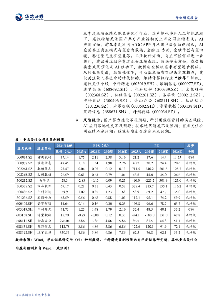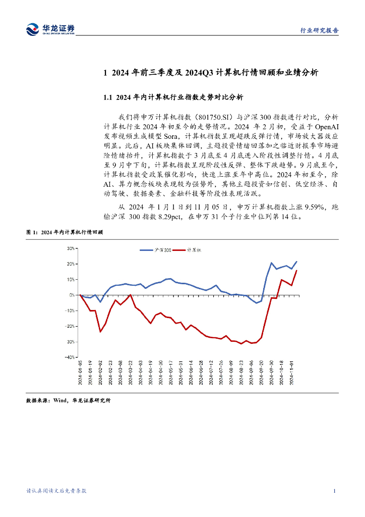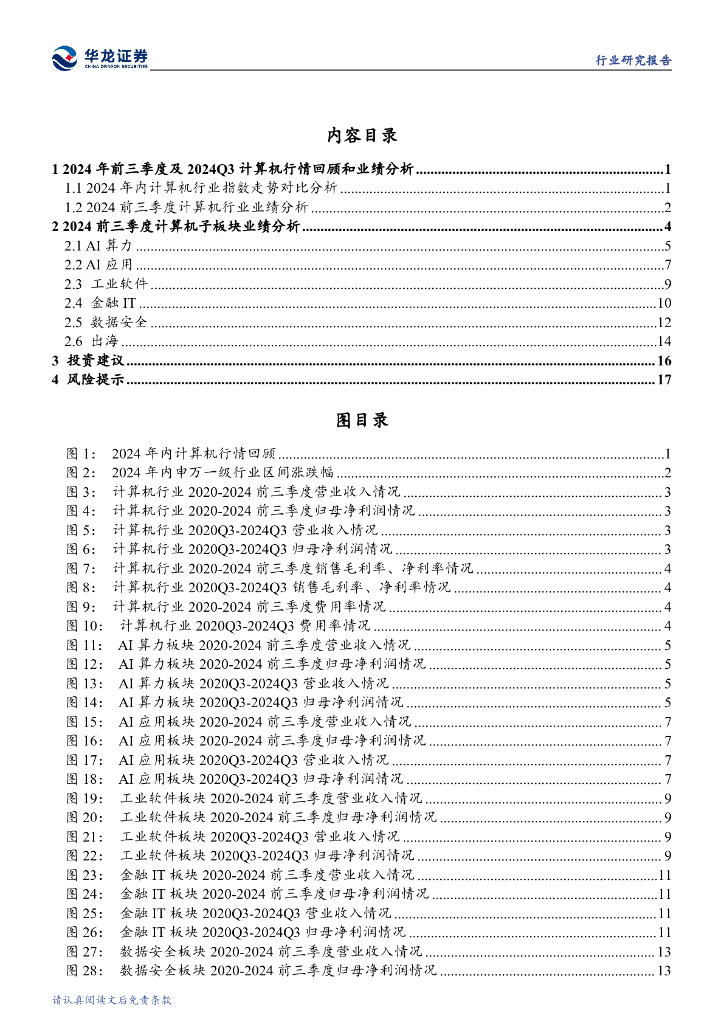 华龙证券:计算机行业2024年三季报综述:收入平稳增长,关注政策催化方向.pdf