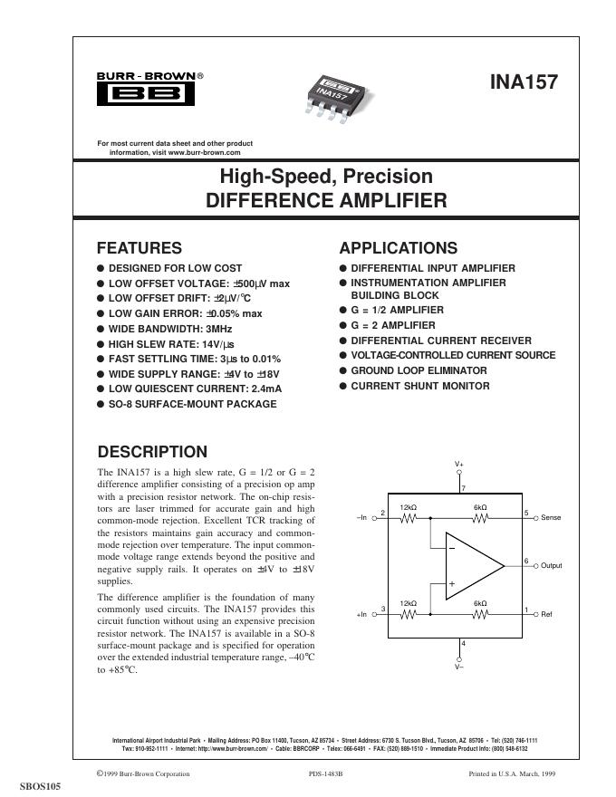 TEXAS INSTRUMENTS INA157 数据手册.pdf