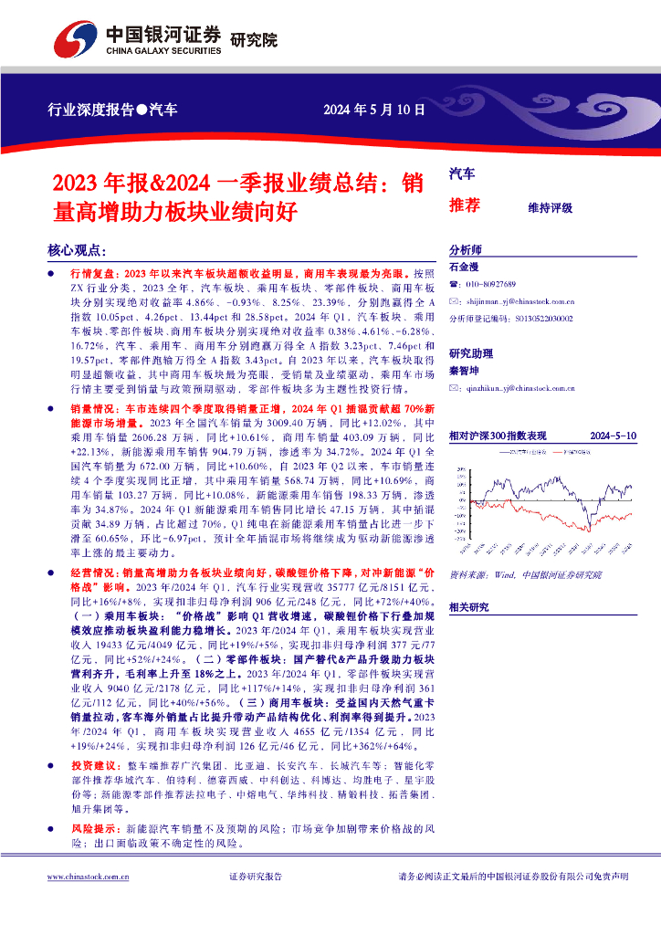 中国银河:汽车2023年报&2024一季报业绩总结:销量高增助力板块业绩向好.pdf