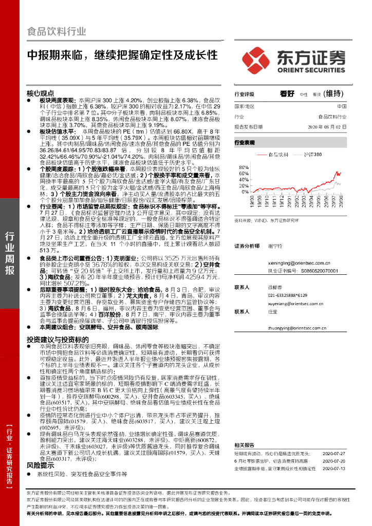 东方证券:食品饮料行业周报:中报期来临,继续把握确定性及成长性.pdf
